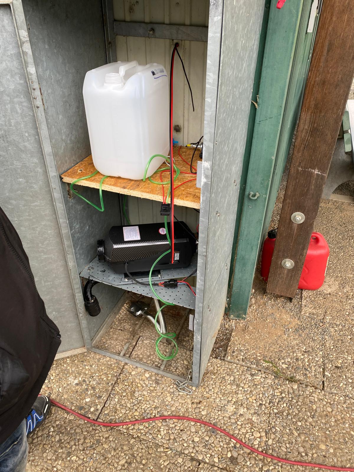 Die alte Gasheizung wurde entfernt, was etwas mehr Platz im Raum schafft. Die neue Lösung ist eine Luft-Luft-Diesel Heizung, die im außen stehenden ehemaligen Gaskasten installiert wurde. Diese Heizung bringt gleich mehrere Verbesserungen mit sich. Sie ist kostengünstiger und bringt eine trockene warme Luft ins innere.